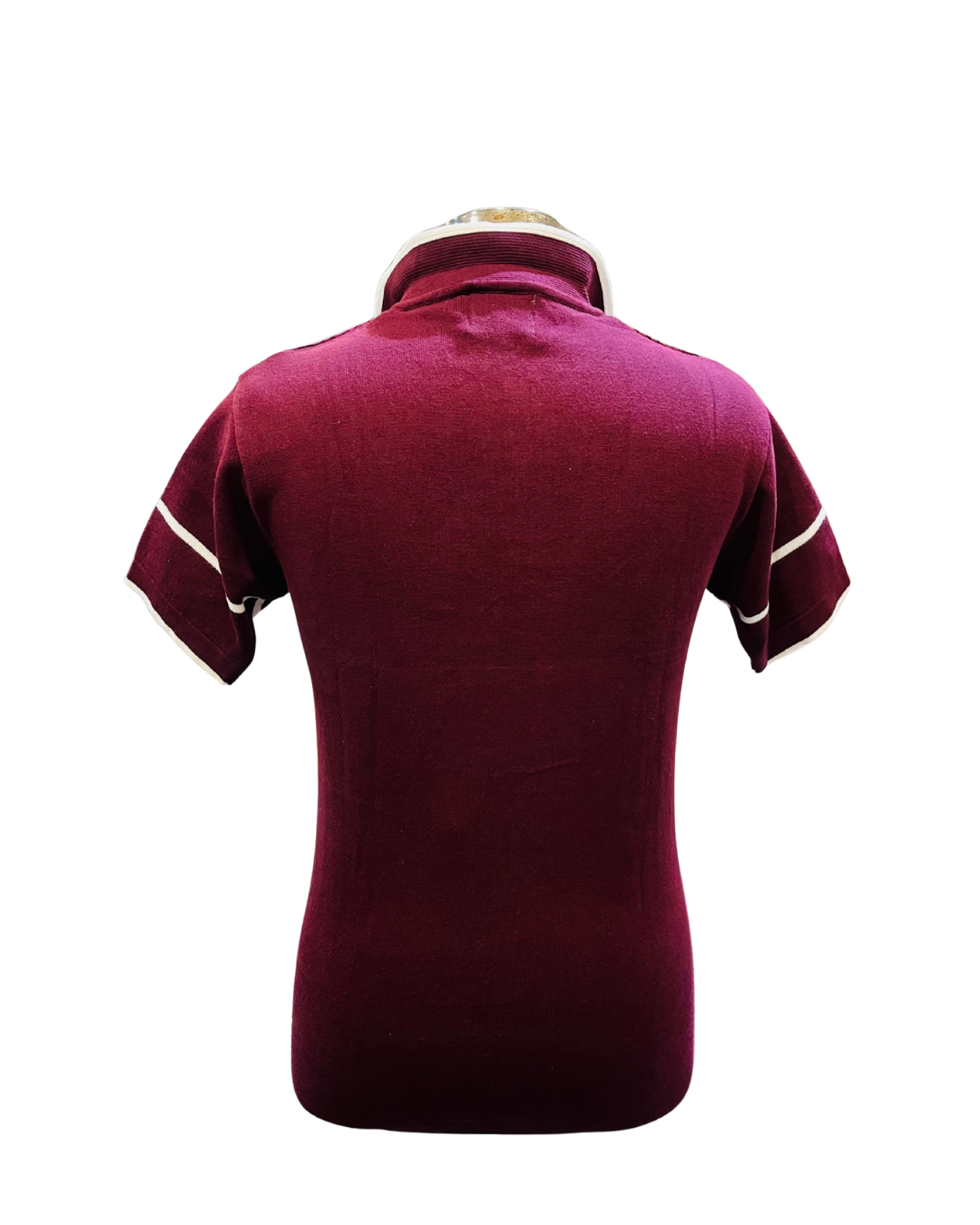 Men's Maroon Textured Knit Polo T-Shirt | Half Sleeve with White Chevron Stripe Design